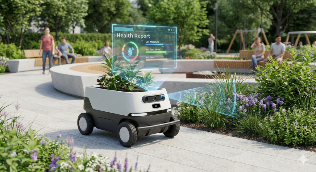 Peyzaj projesi sadece çizimle bitmez; asıl süreç uygulama sonrası başlar. YZ destekli sensörler ve IoT (Nesnelerin İnterneti) sistemleri, bitkilerin su ihtiyacını, topraktaki besin değerlerini ve hastalık risklerini anlık olarak takip edebiliyor. Akıllı sulama sistemleri, hava durumunu YZ ile analiz ederek sadece ihtiyaç duyulan miktarda su kullanarak %50’ye varan tasarruf sağlayabiliyor. Bu, özellikle kuraklıkla mücadele eden modern kentler için hayati bir önem taşıyor.